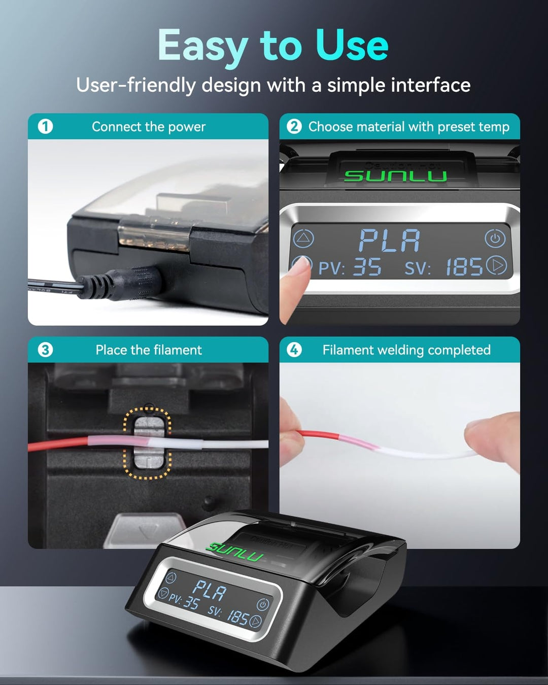 🔹 Omogoča spajanje odrezkov filamentov brez odpadka (zero waste)