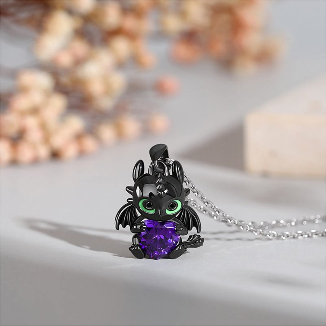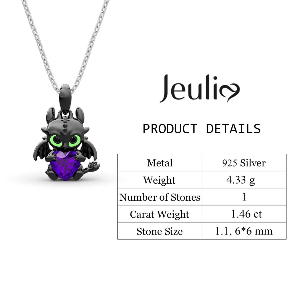 🐉 JEULIA "Show Your Heart" – srebrna ogrlica S925, zmajček s srčkom cirkonij