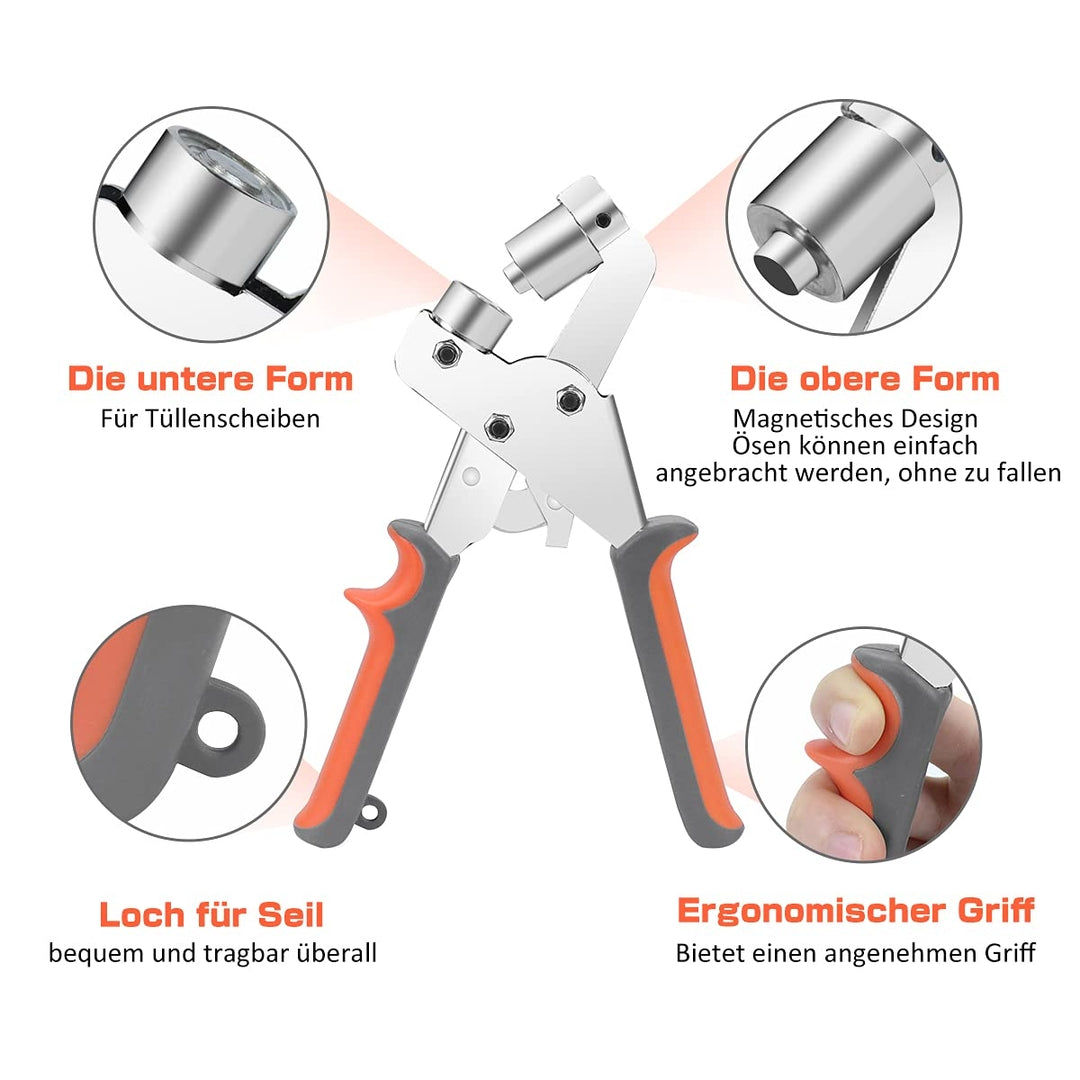 🔧 BriSunshine Eyelet set – ročne klešče za kovinske obročke + 500 kosov obročkov (Ø 10 mm)