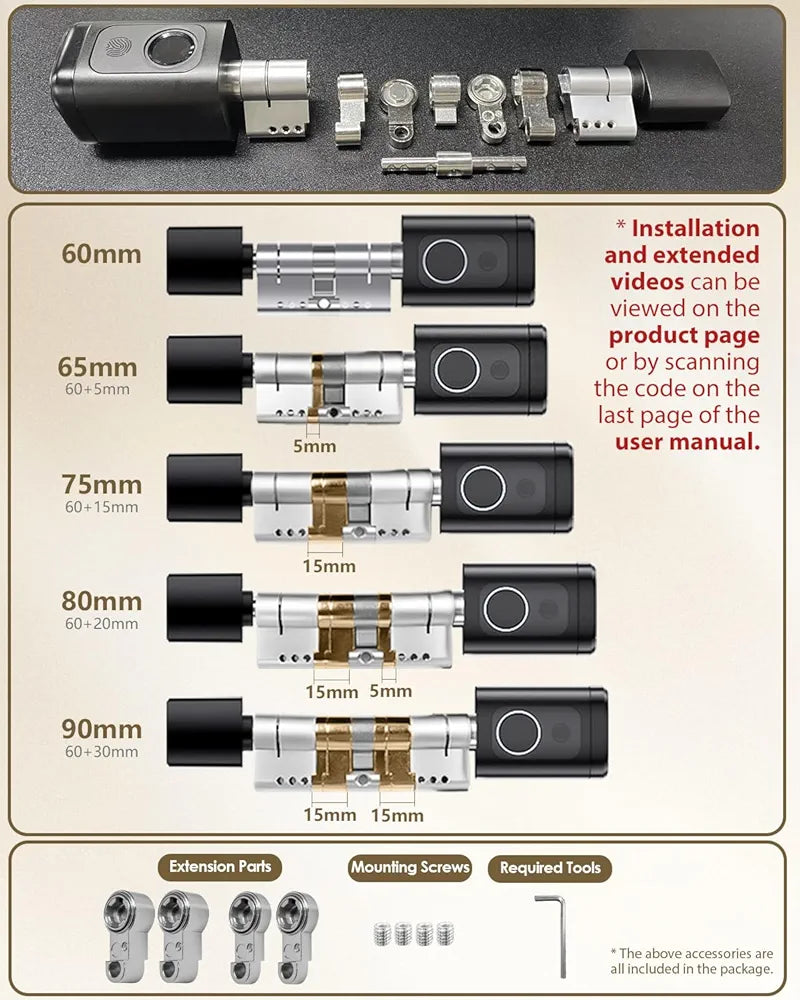 AceMining Smart Cylinder smart lock – fingerprint / PIN / card / app