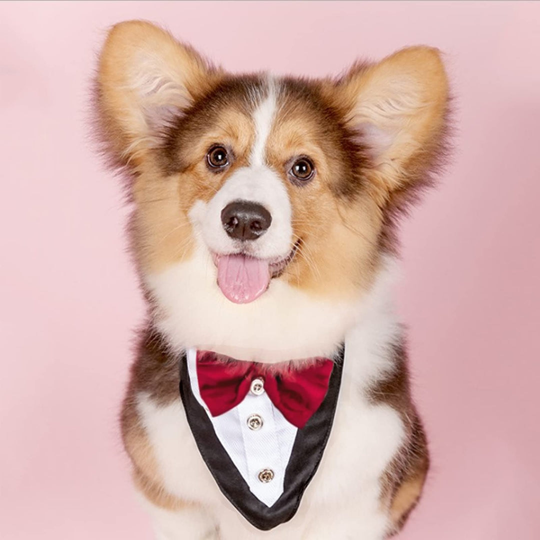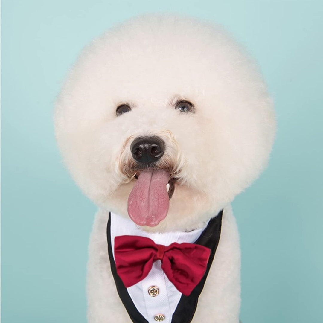 Elegantna obleka za pse – rdeči metuljček, nastavljiva velikost 24–44 cm