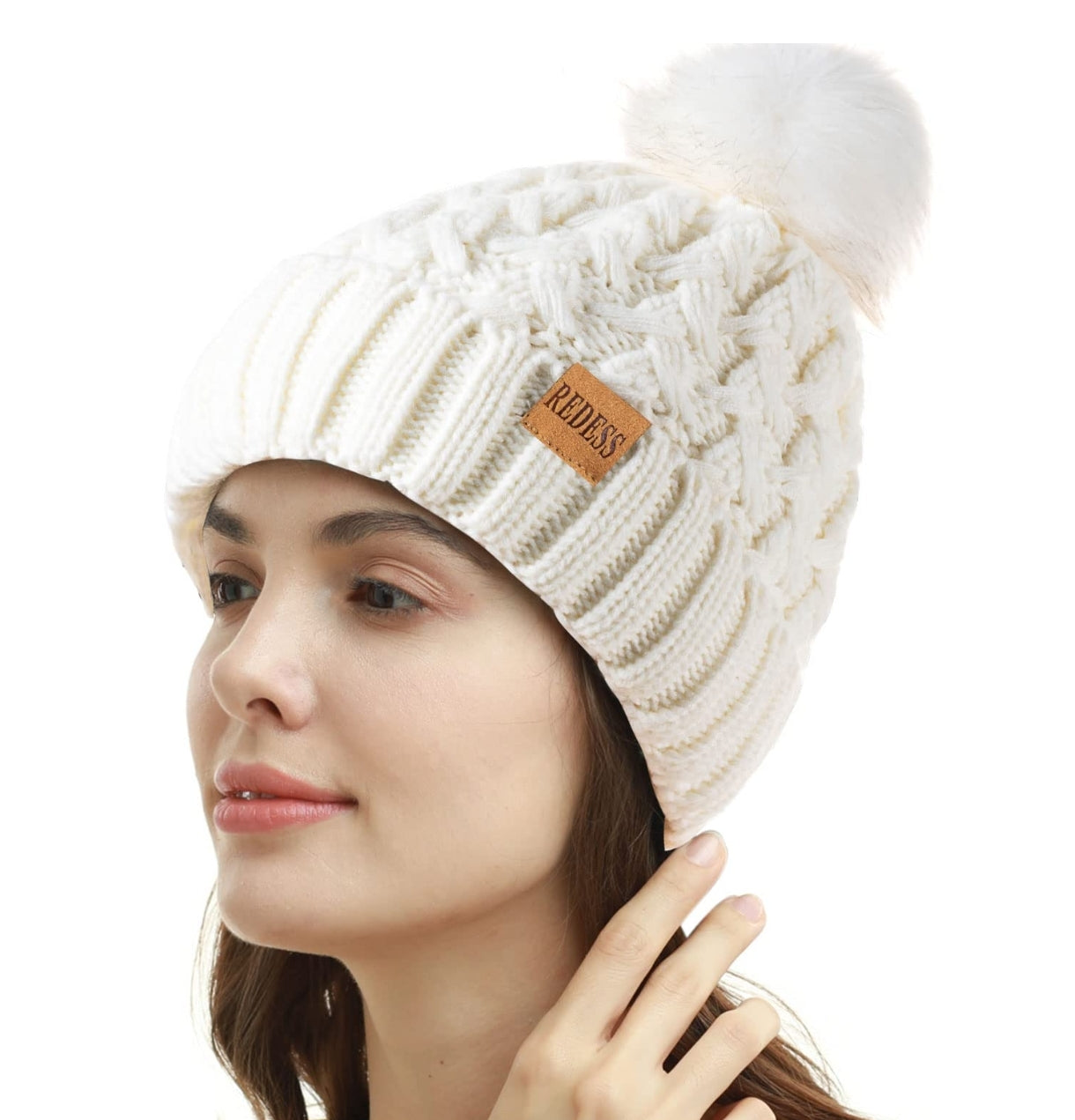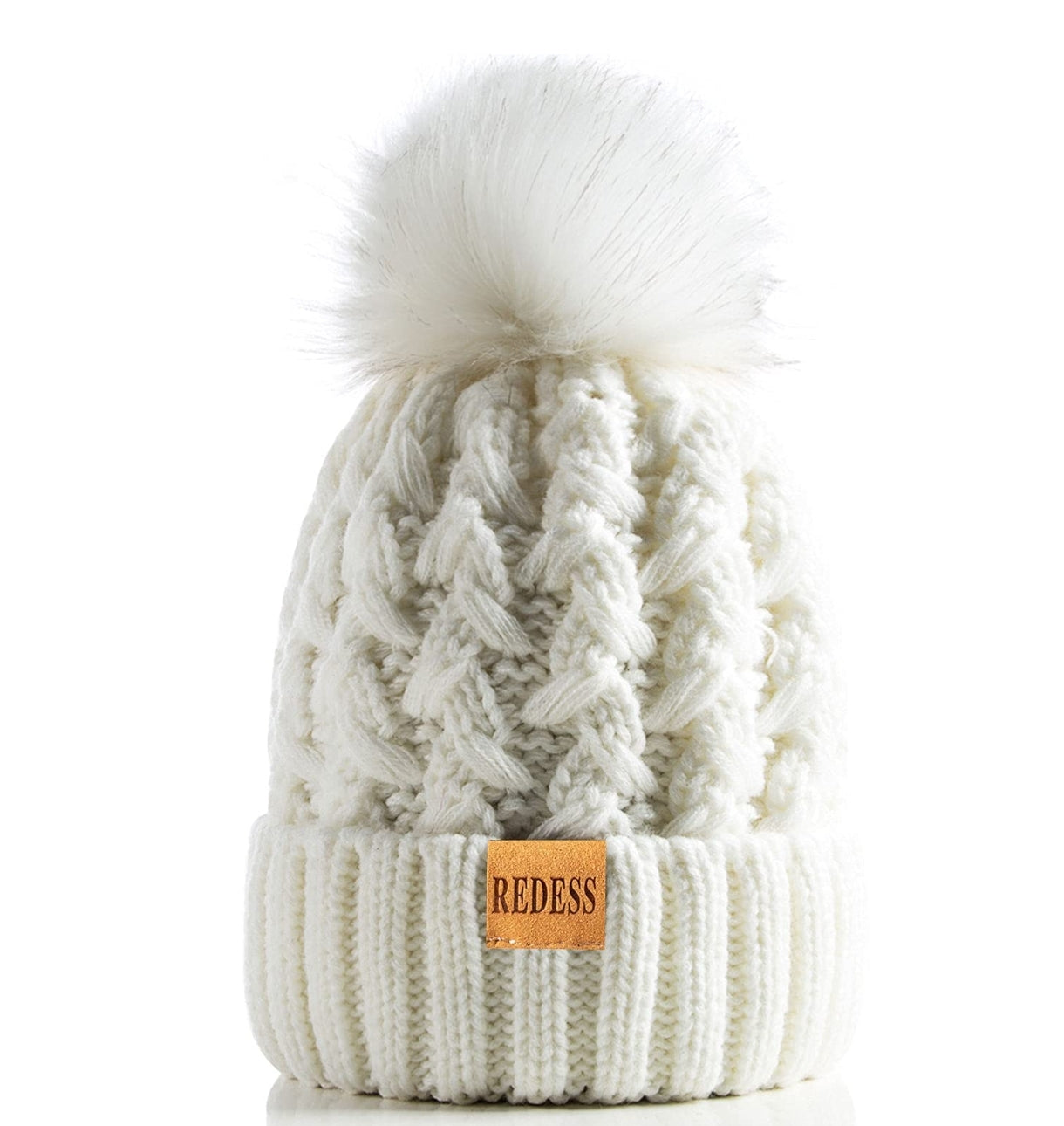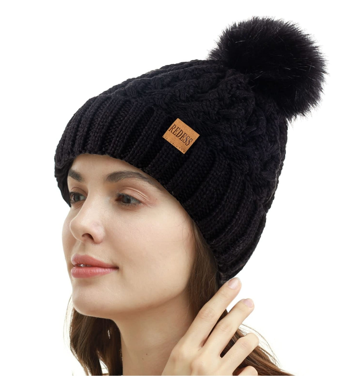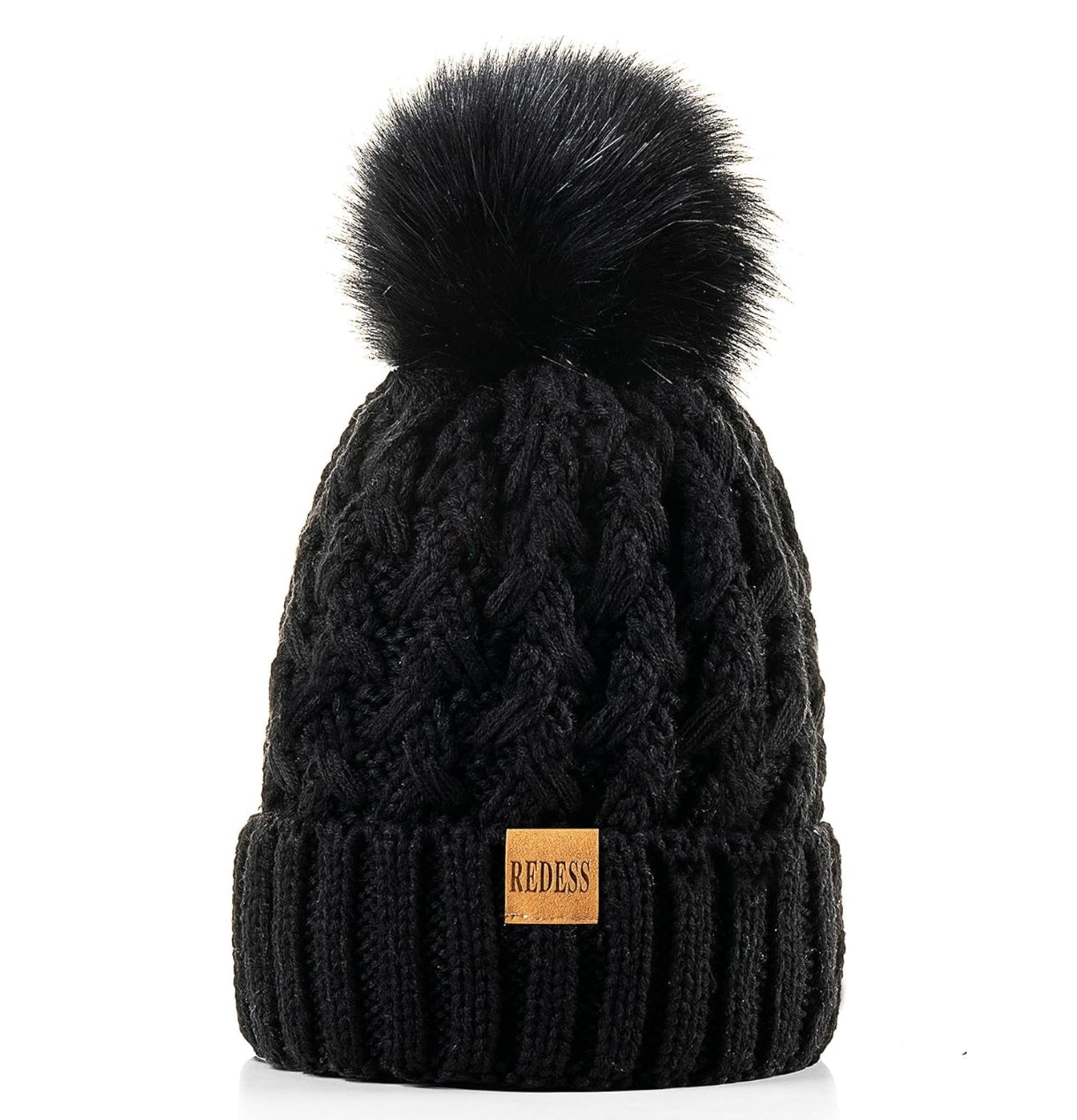 REDESS pletena zimska kapa s cofom – črna ali bela