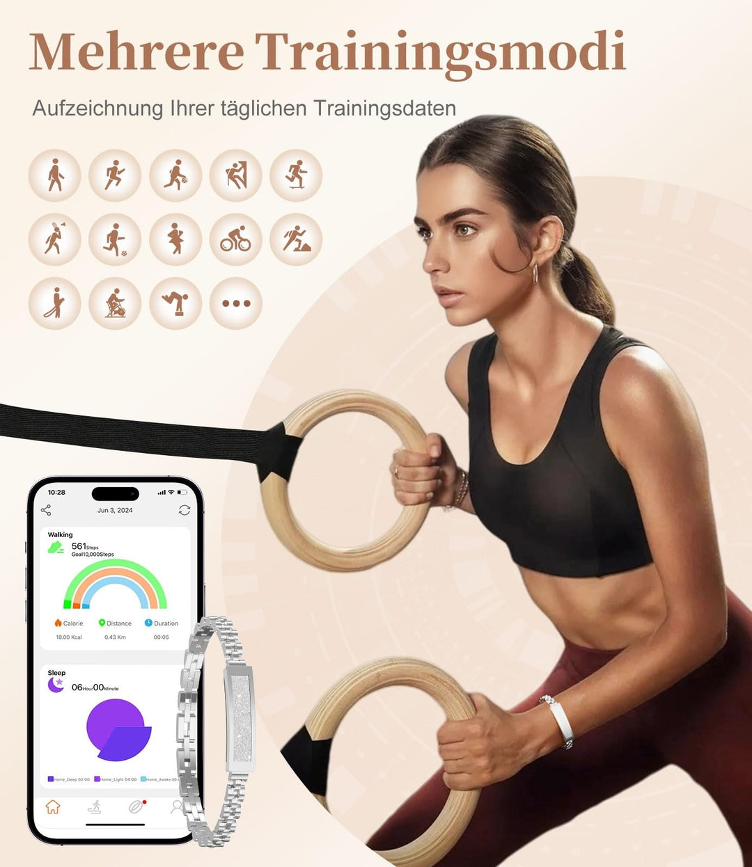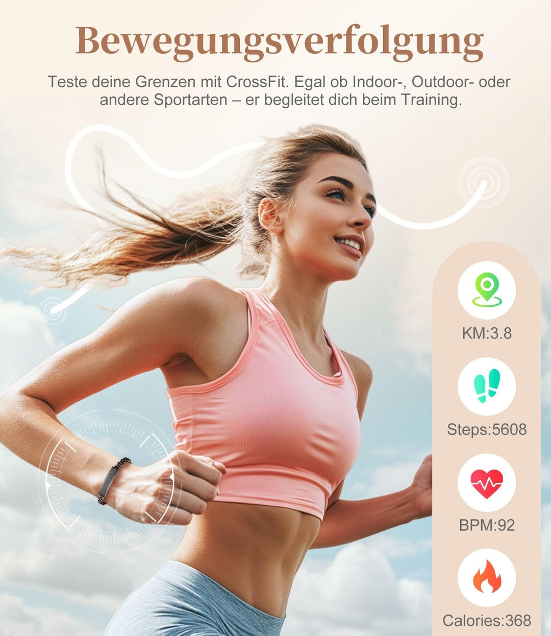 🔹 Funkcije: štetje korakov, kalorij, merjenje srčnega utripa, SpO₂, analiza spanja