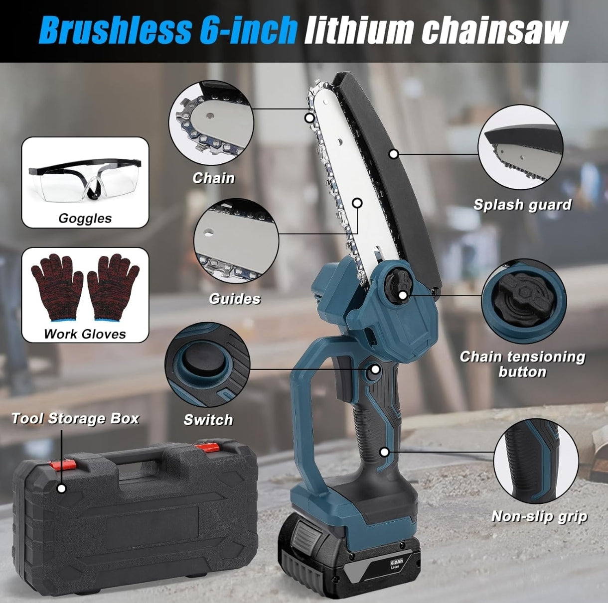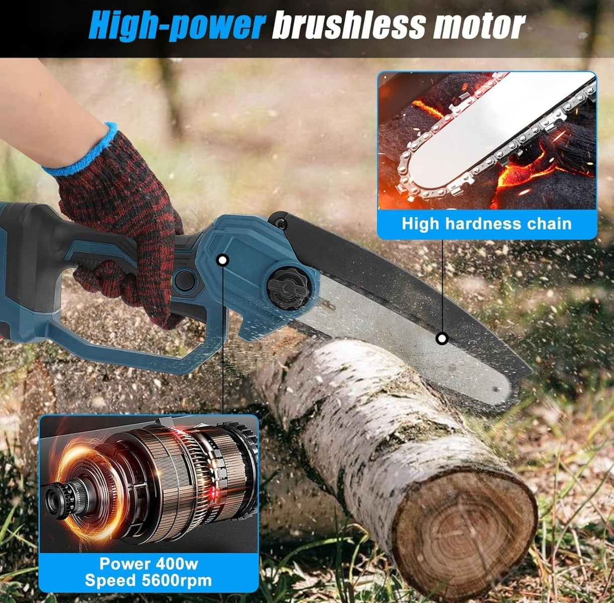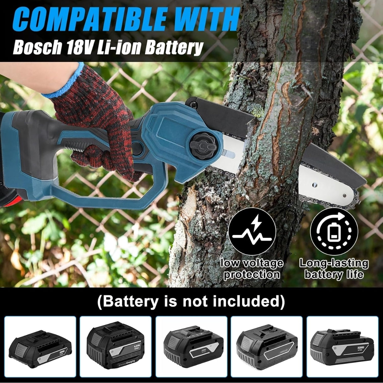 6'' mini akumulatorska verižna žaga – brezkrtačni motor, združljiva z Bosch 18 V baterijo (brez baterije)