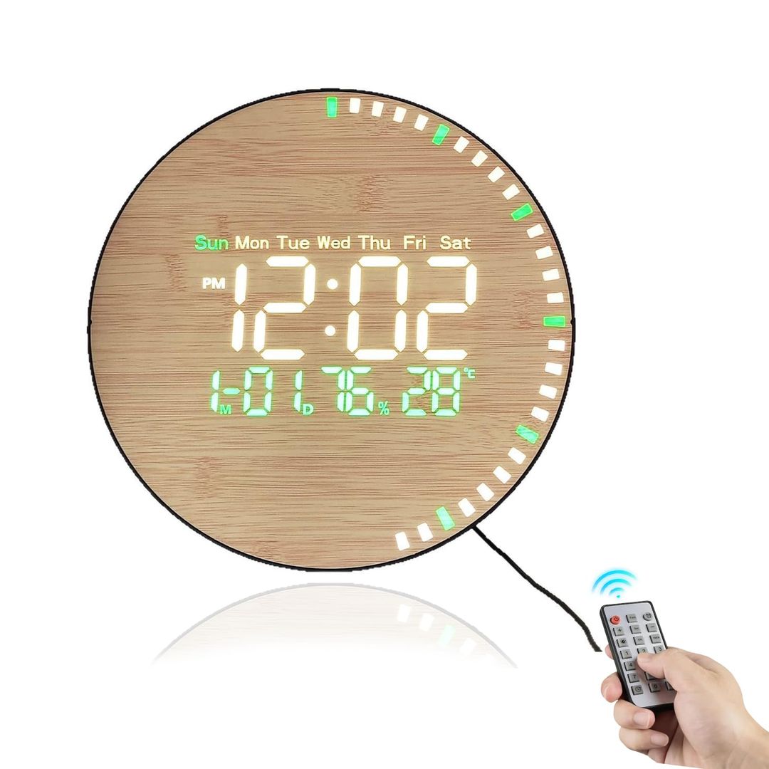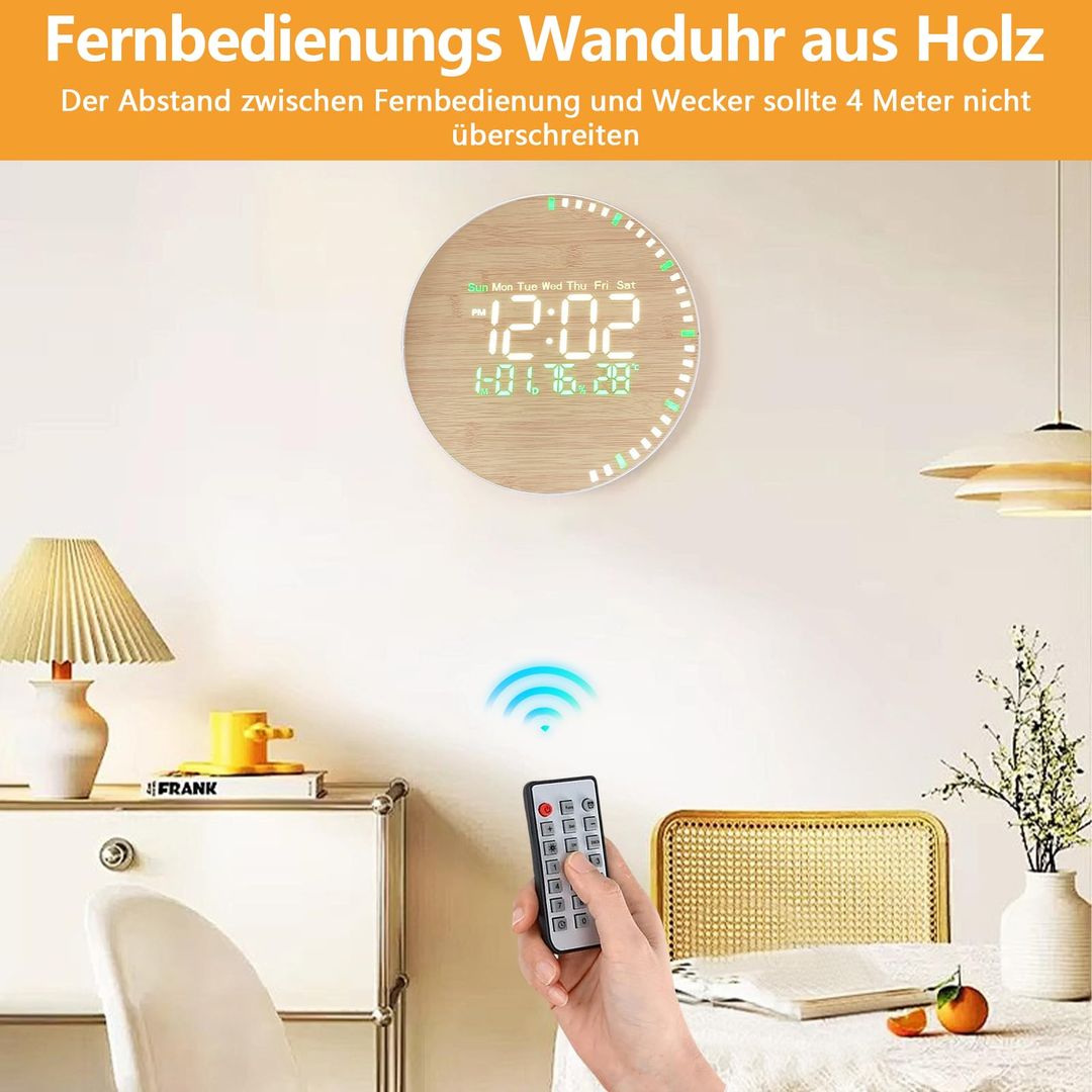 Digitalna stenska ura z daljinskim upravljalnikom - imitacija lesa