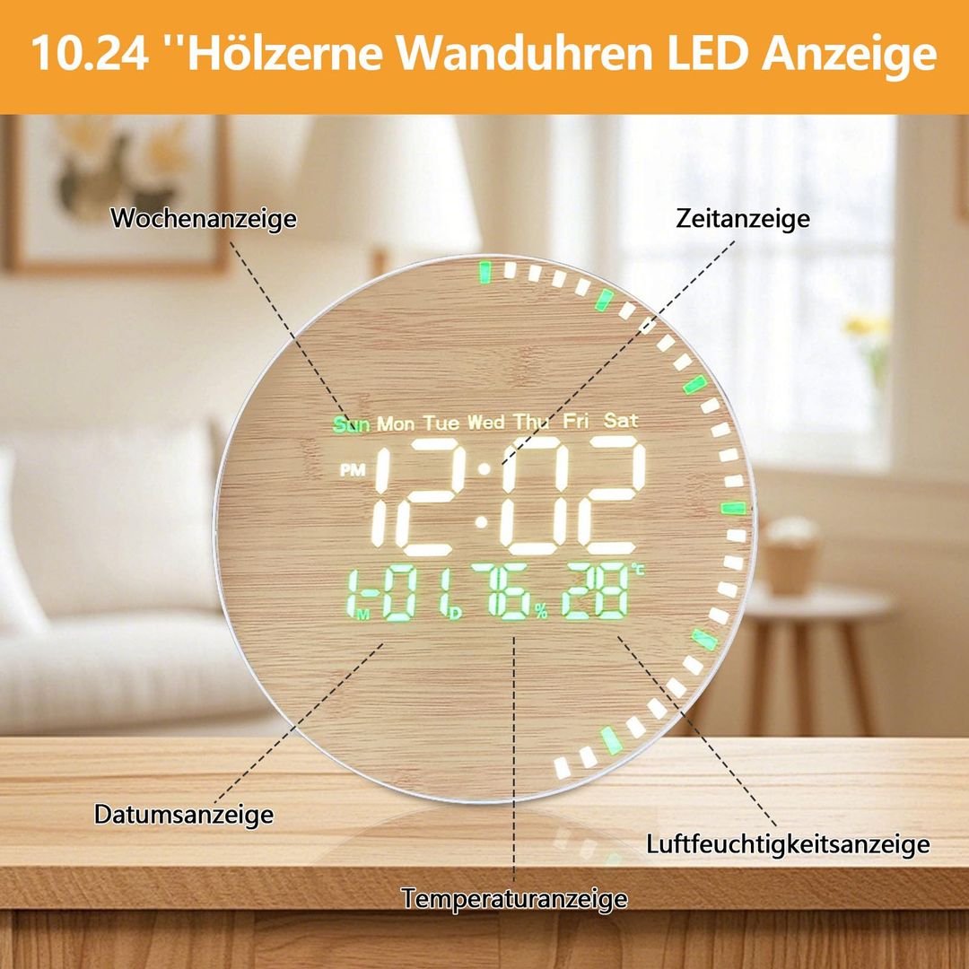 🔹 Ura združuje naraven videz lesa z modno LED tehnologijo za prikaz informacij.