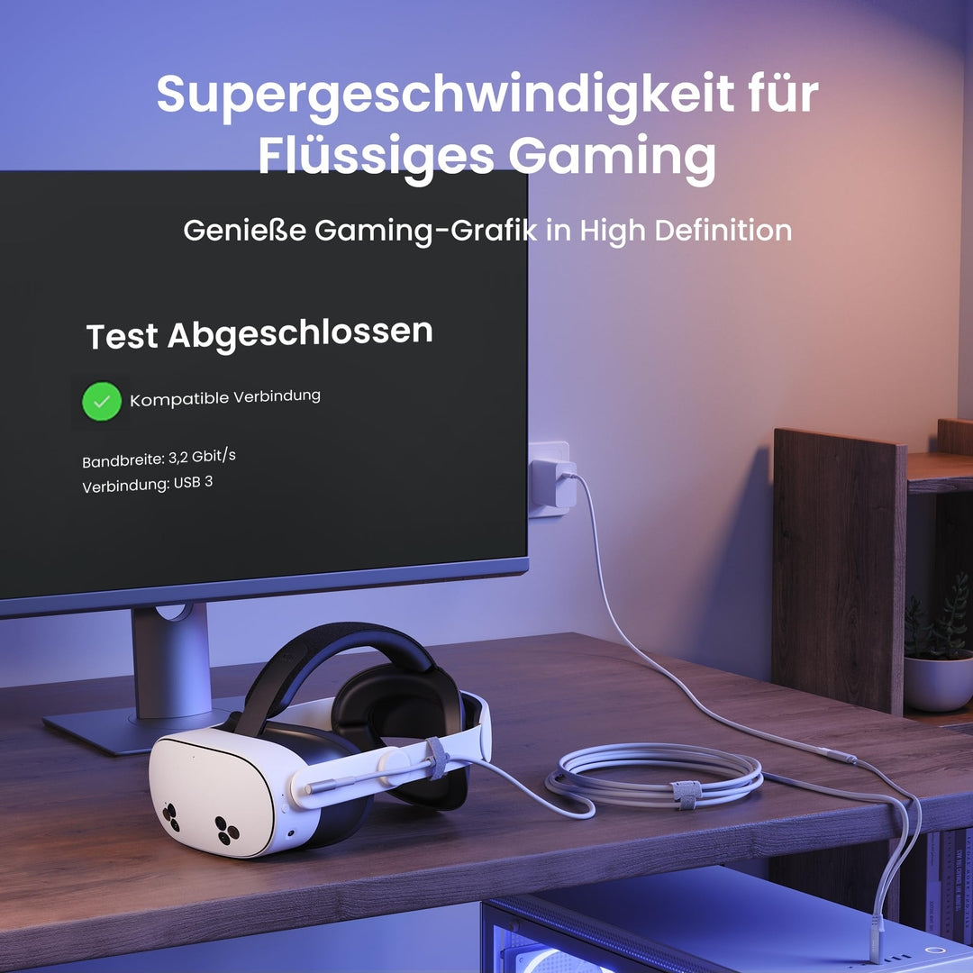 🔹 Premium povezovalni kabel z vključenim napajanjem in prenosom podatkov – idealen za VR igranje brez prekinitev