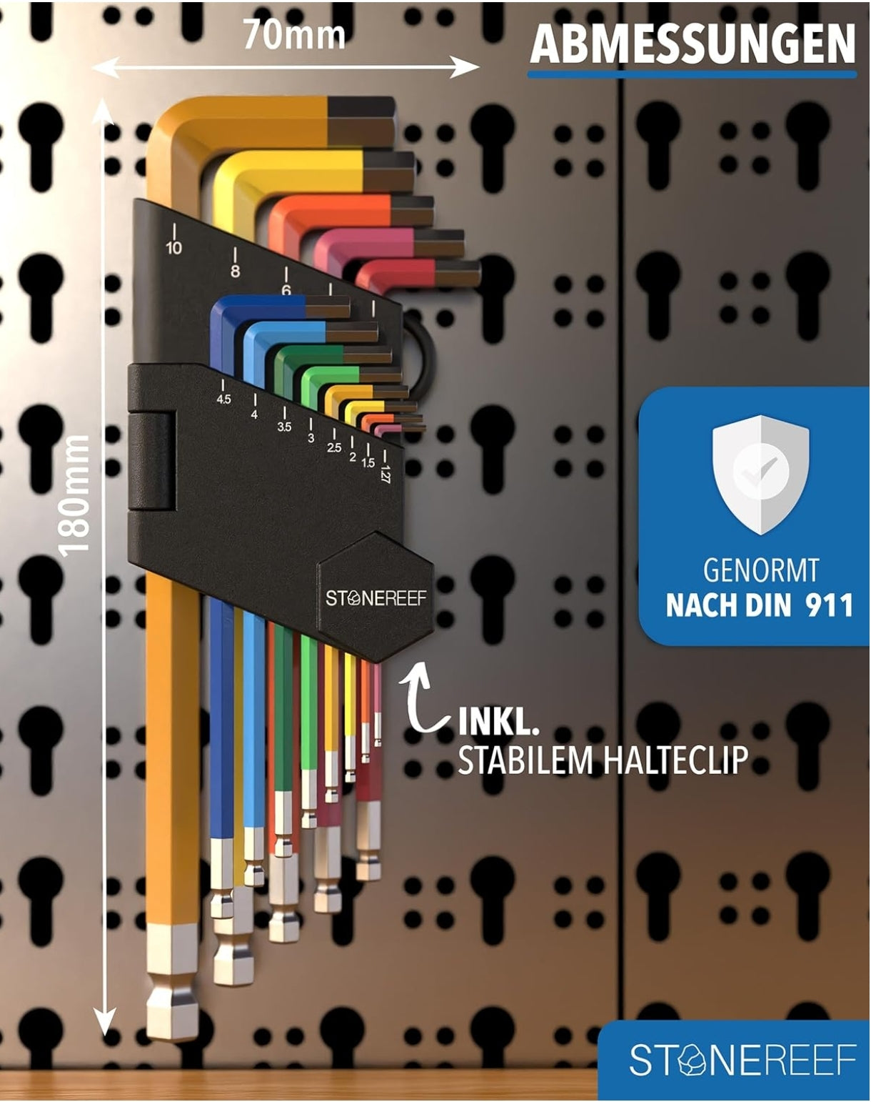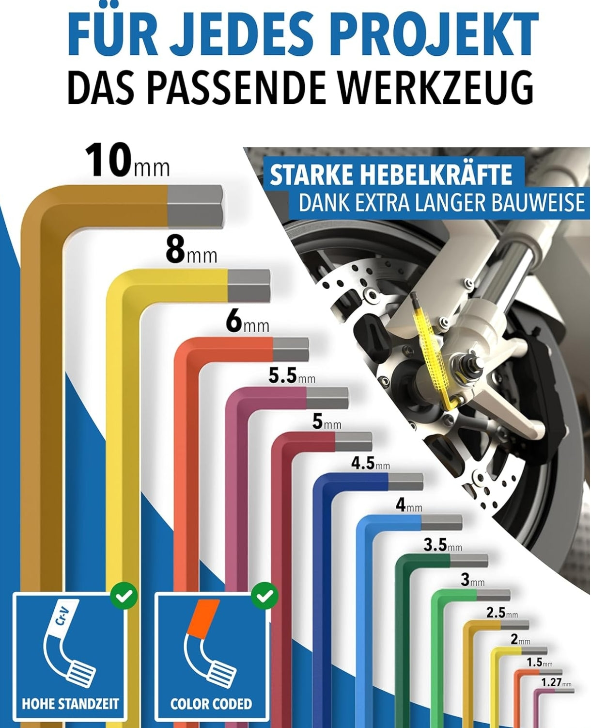 🔹 13-delni komplet barvno označenih imbus ključev (1,27–10 mm)