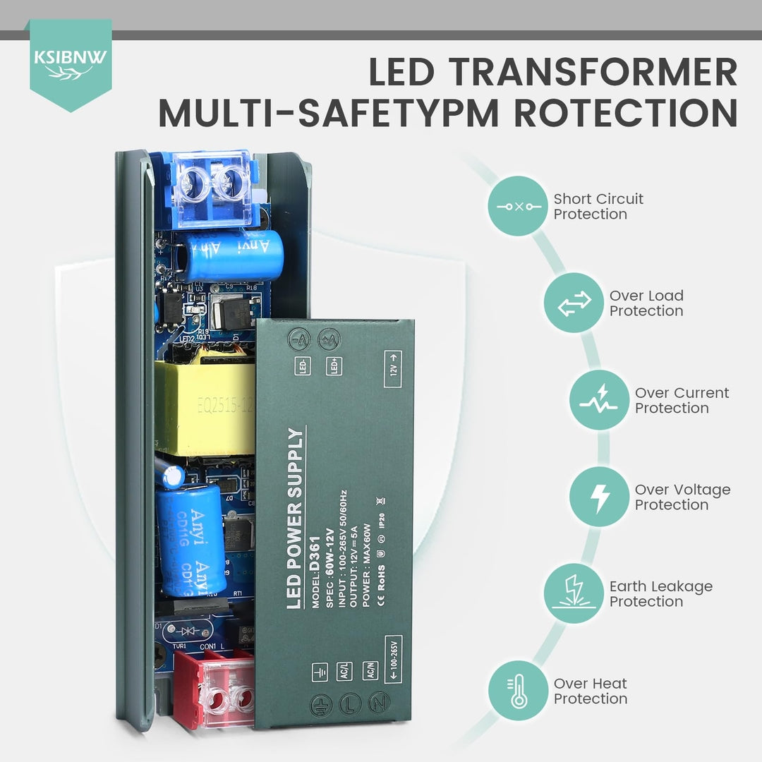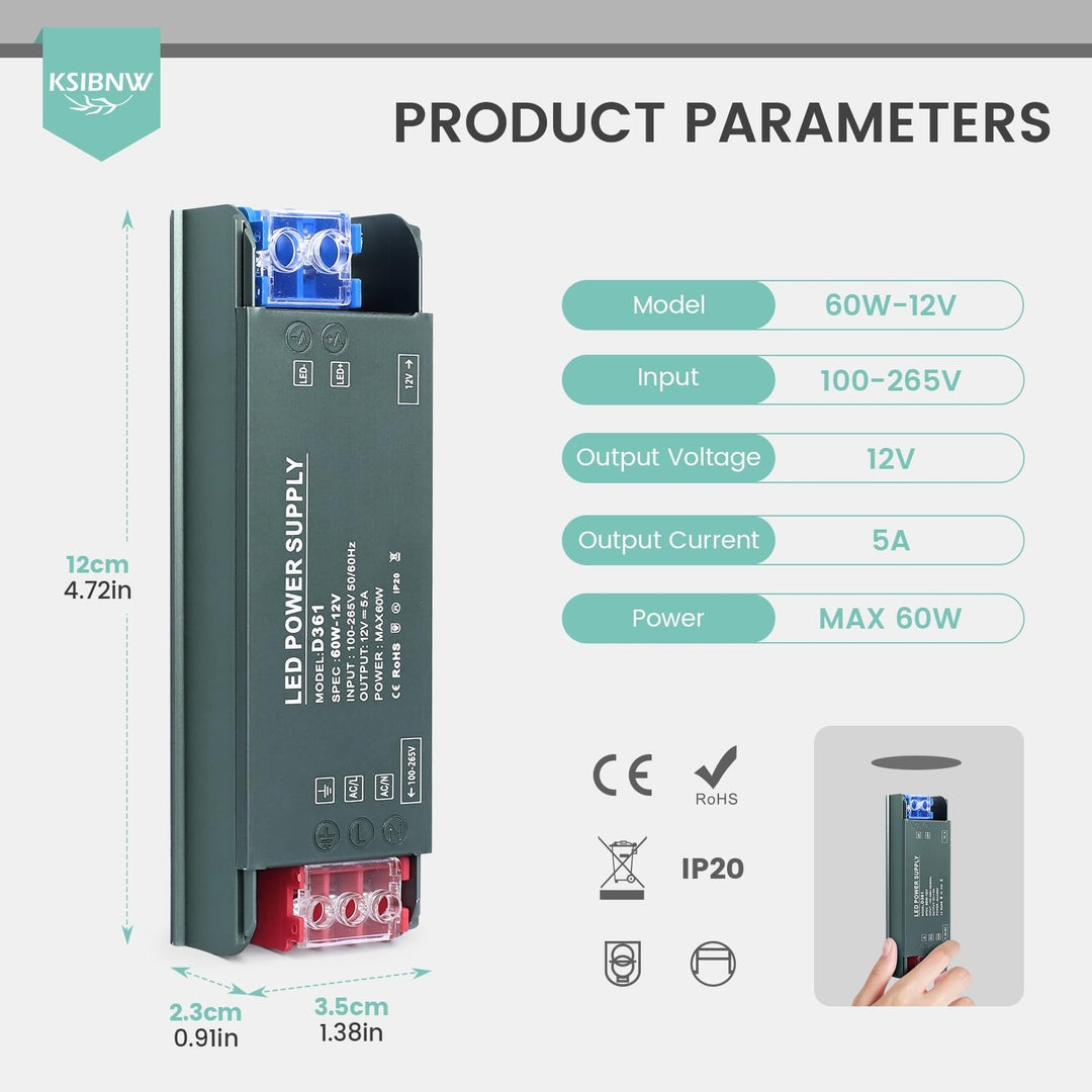 KSIBNW LED napajalnik / transformator 12V 5A 60W