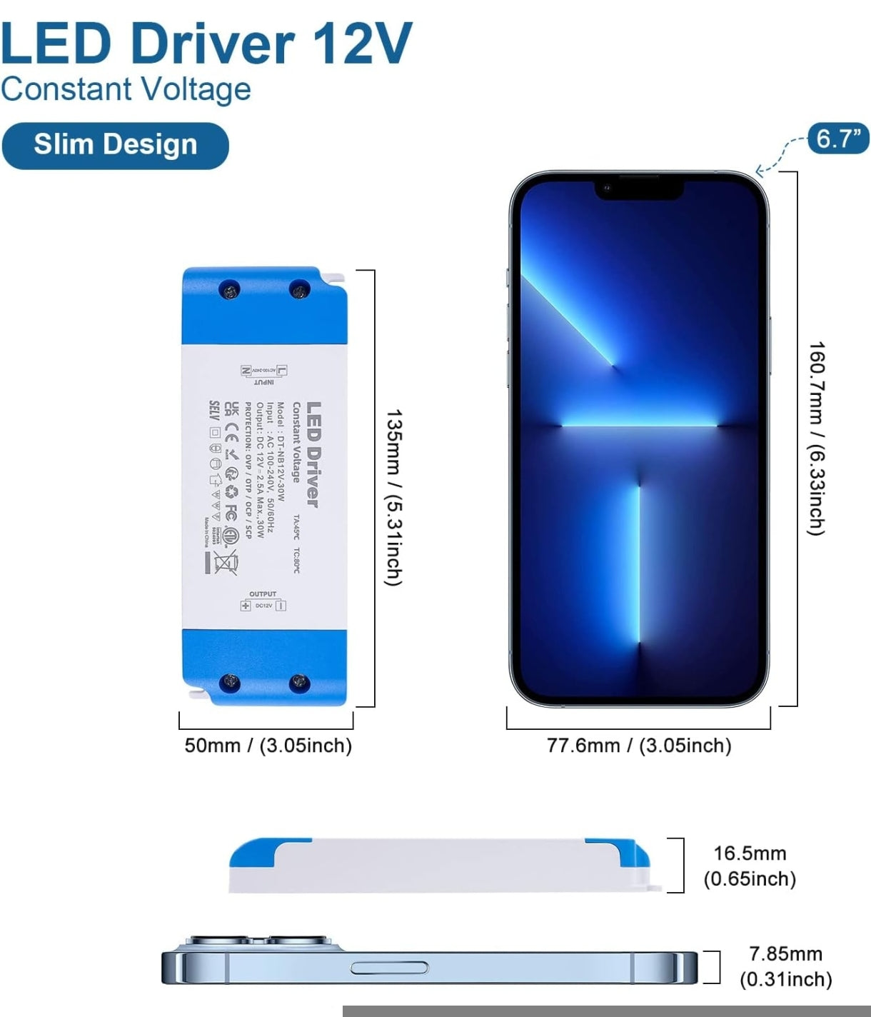 LED napajalnik 12V – 30W, tanek (Slim), konstantna napetost