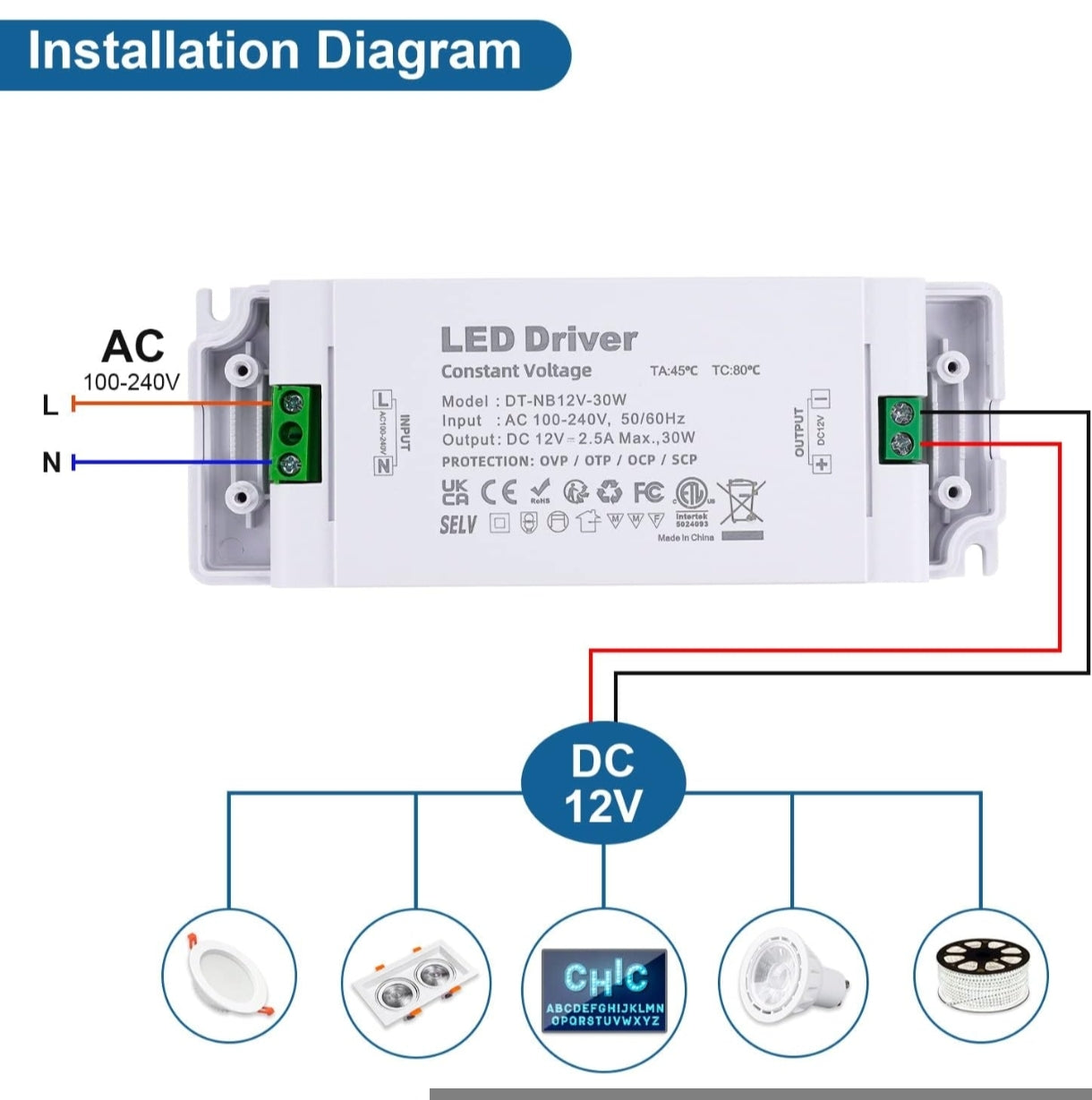 🔹 Izhodna napetost: DC 12V