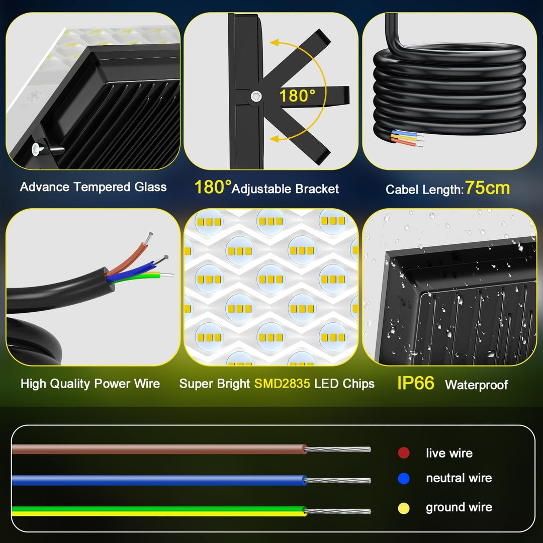 🔹 Izjemno močna svetilnost 10.000 lm (6500K hladno bela) – široka in enakomerna osvetlitev