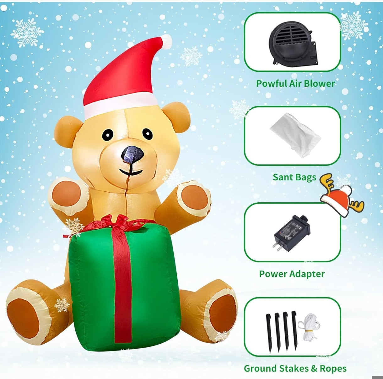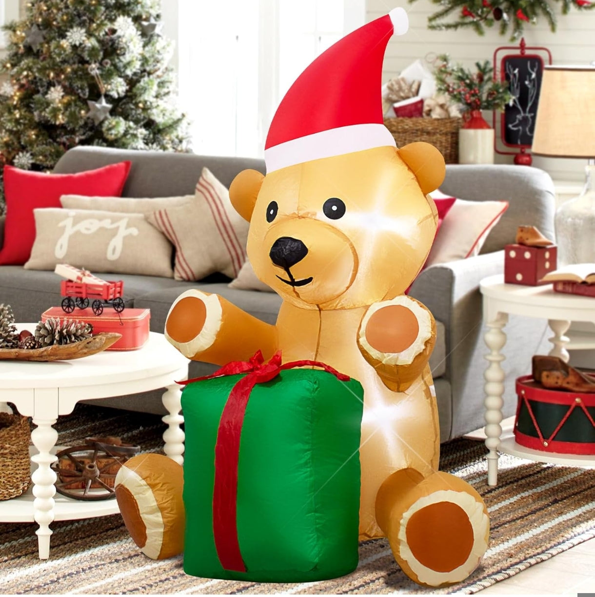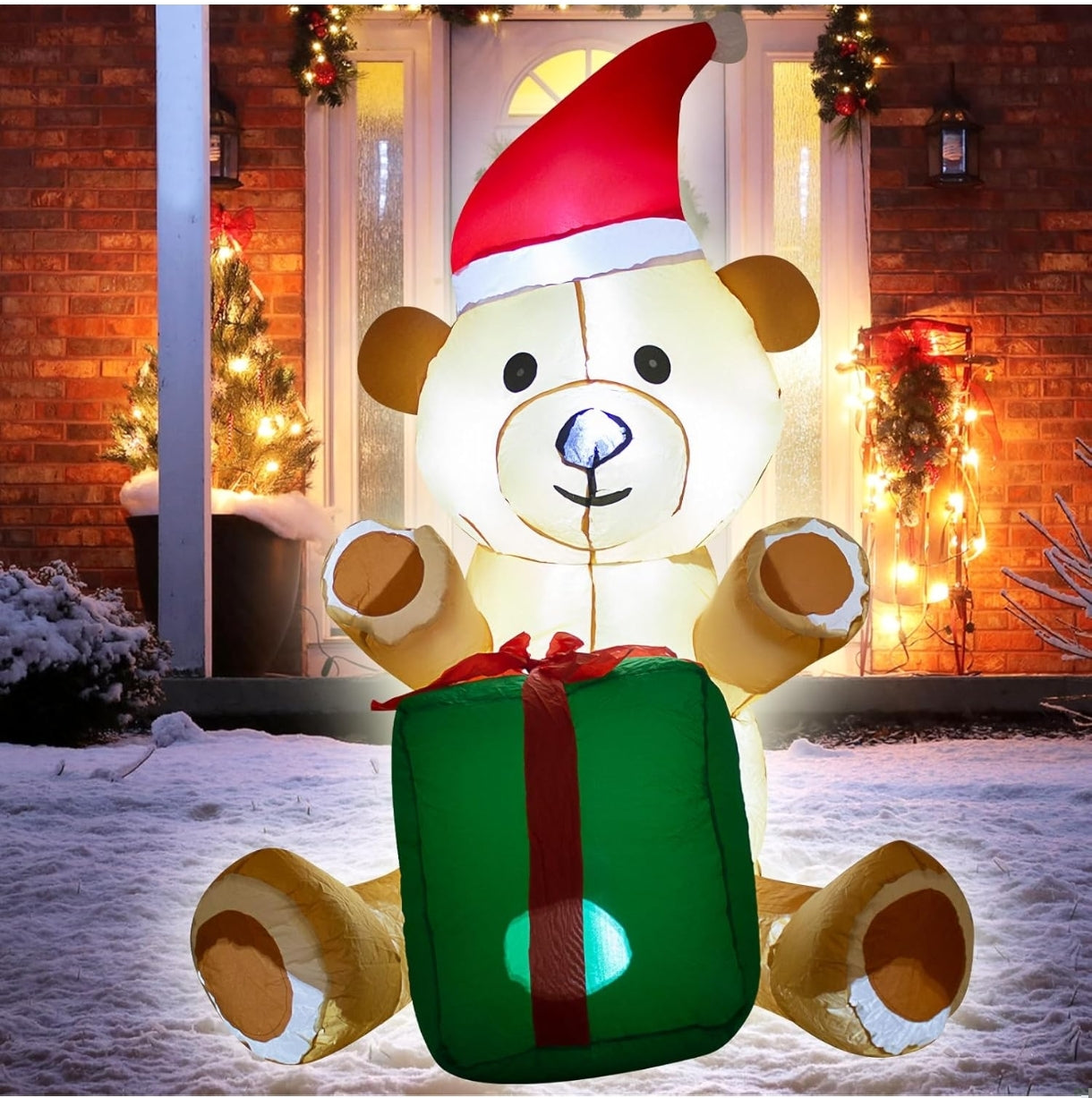 🔹 Velik napihljiv božični medved z darilom za praznično okrasitev