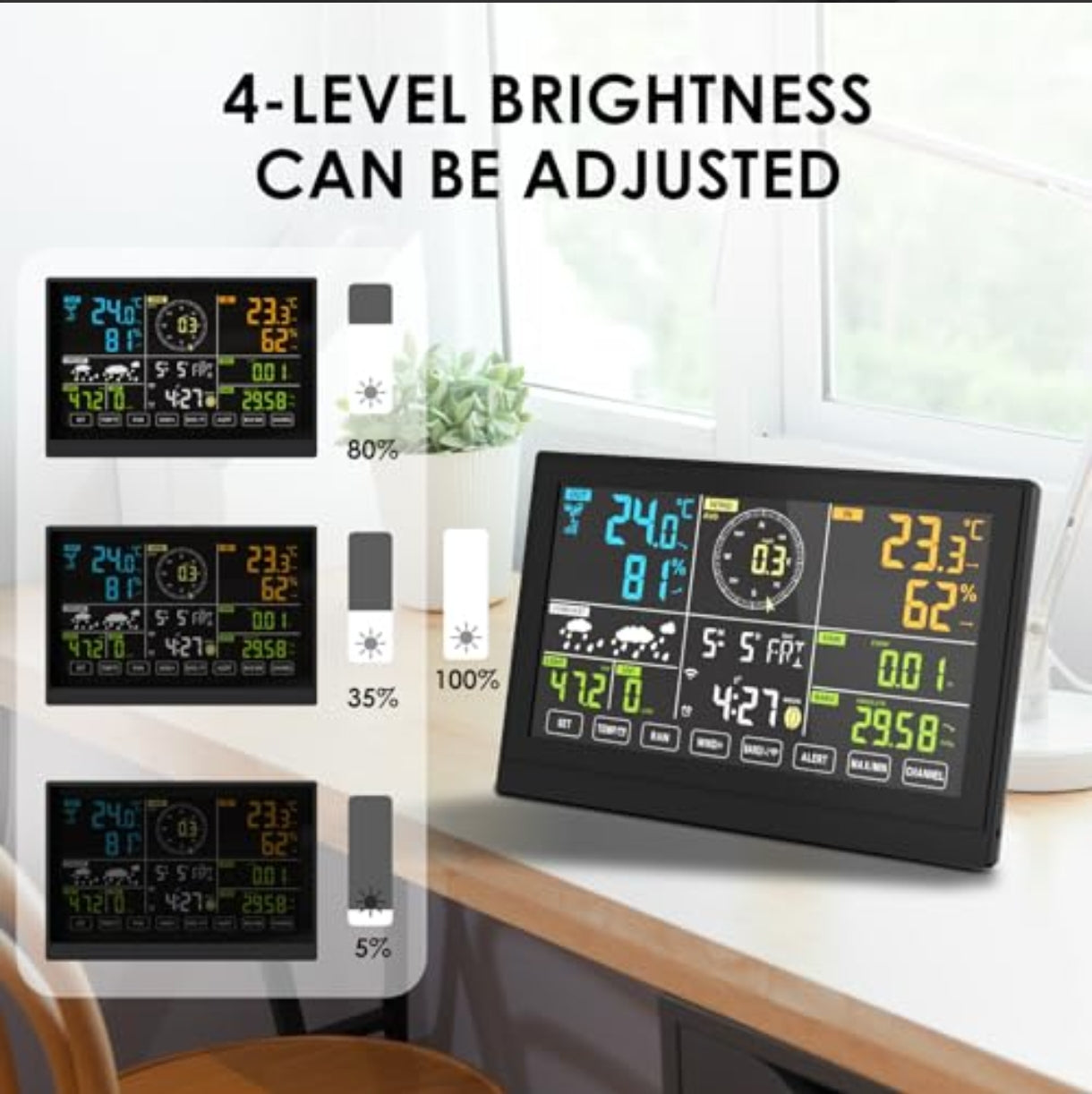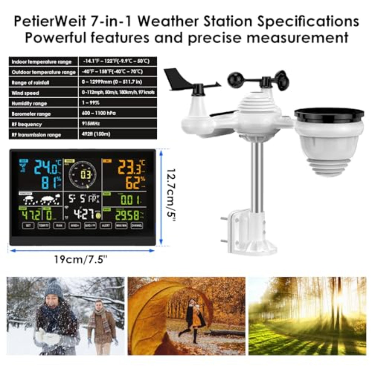 PetierWeit 7-v-1 brezžična vremenska postaja z zunanjim senzorjem in barvnim LCD zaslonom