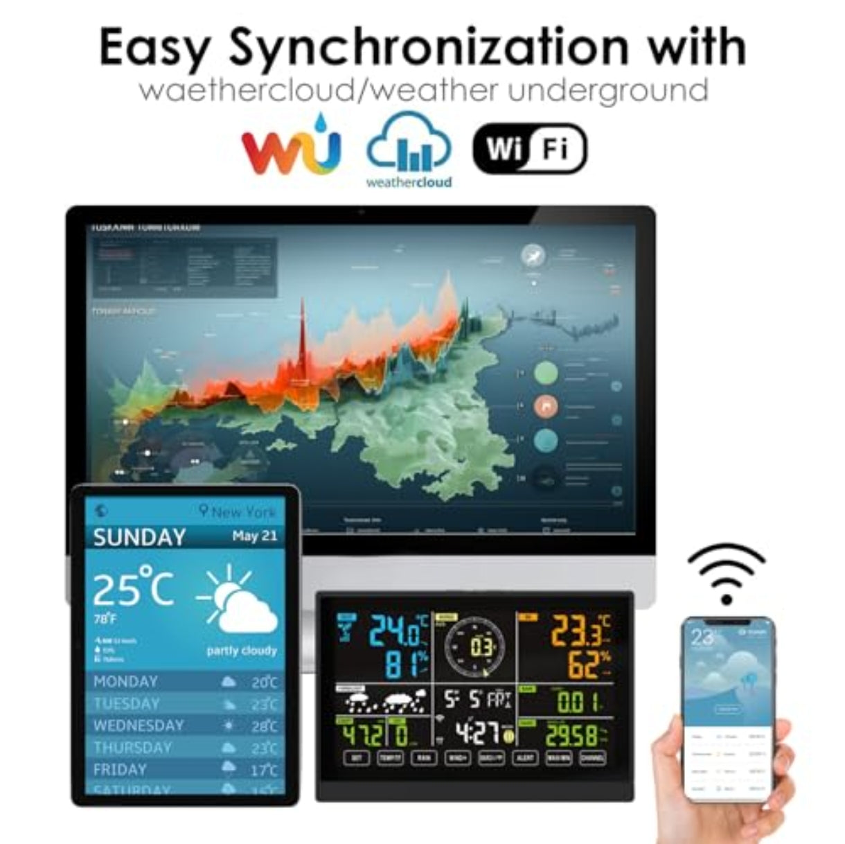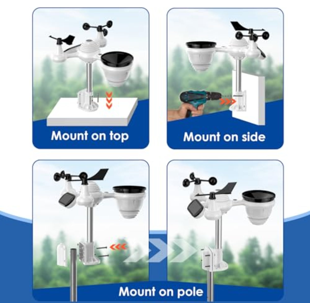 🔹 Natančne meritve s senzorji za veter, padavine, UV, tlak in temperaturo – idealno za ljubitelje vremena ali uporabo doma in na vikendu