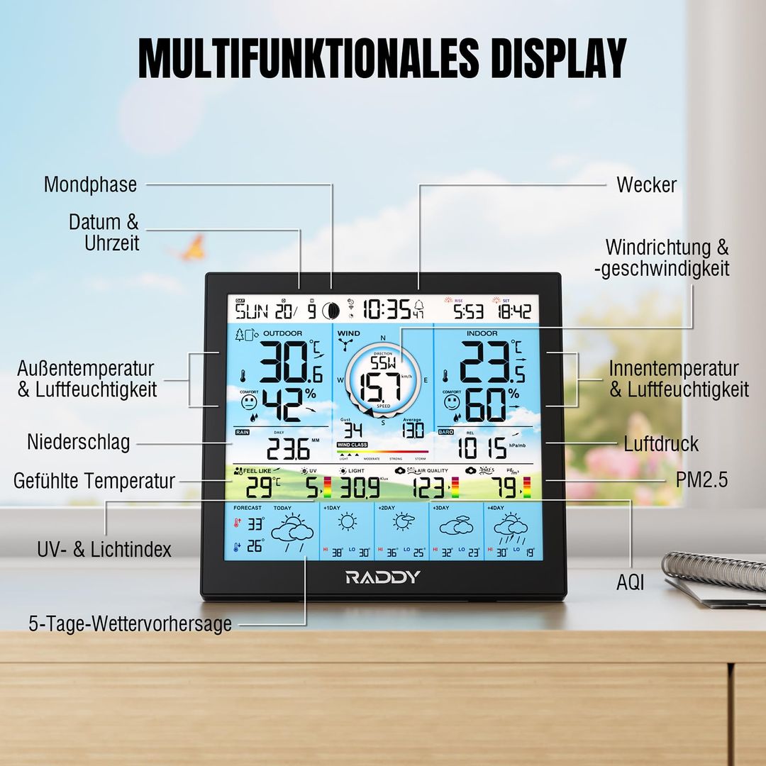 🔹 Naprava vključuje pregleden 10-palčni barvni zaslon za enostavno spremljanje vseh vremenskih podatkov.