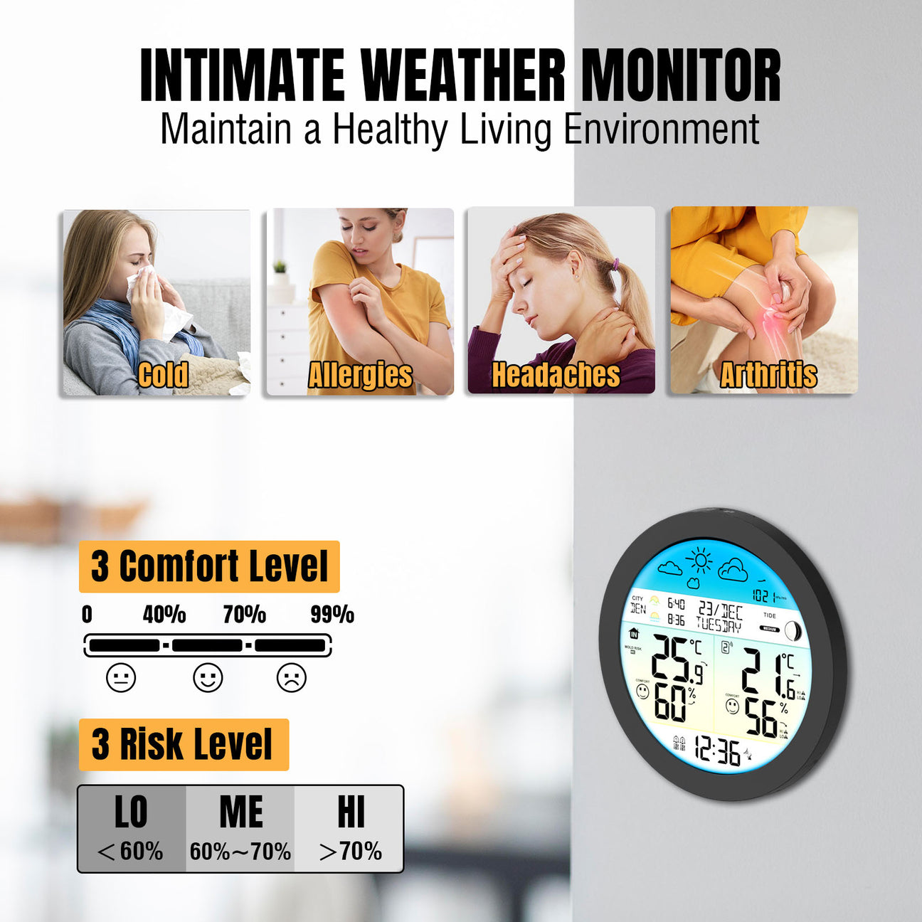 🔹 Pomaga ohranjati zdravo bivalno okolje in spremljati mikroklimo doma