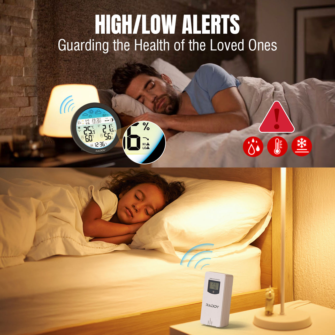 🔹 Meri notranjo in zunanjo temperaturo ter vlago – s priloženim brezžičnim senzorjem