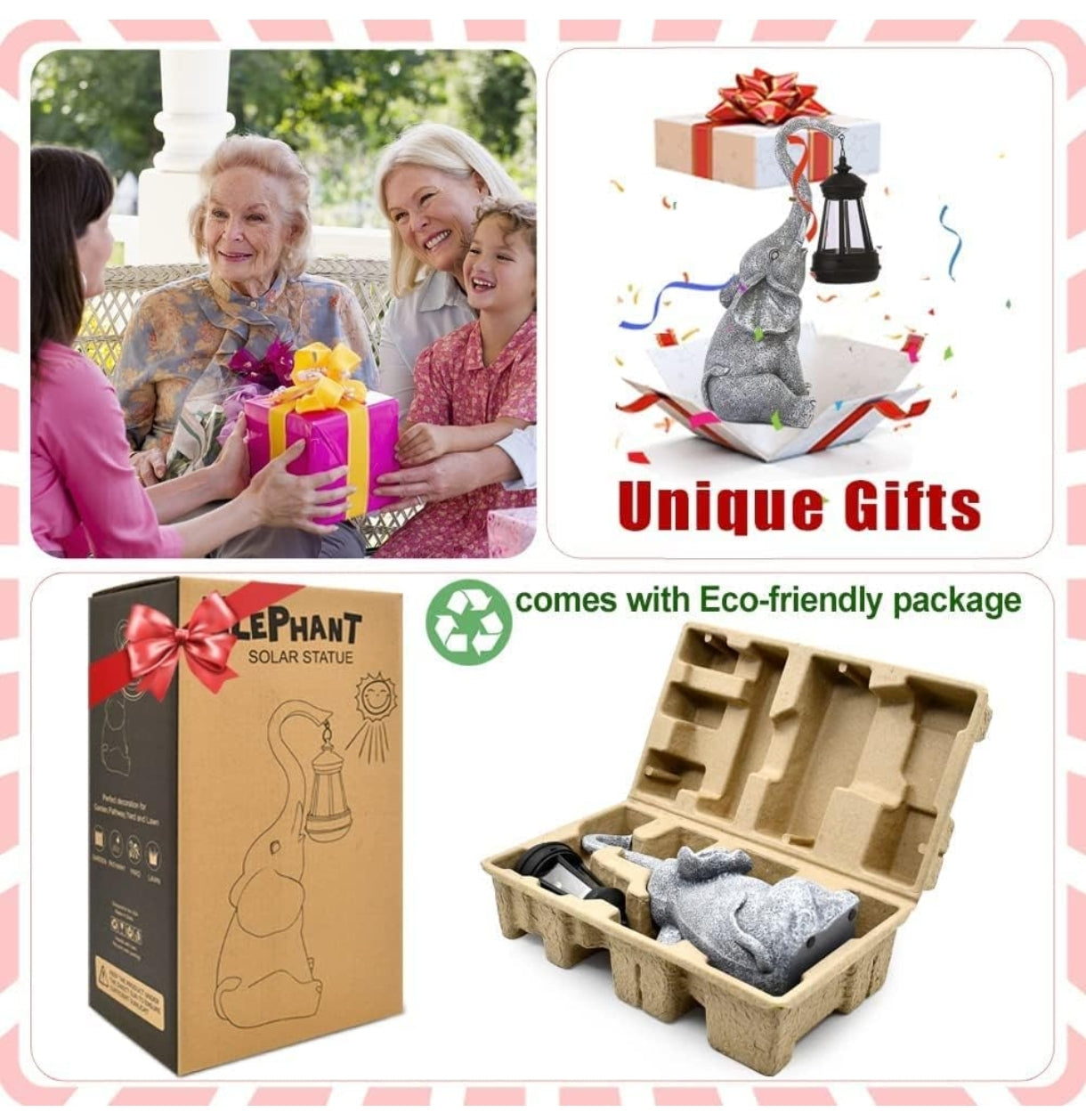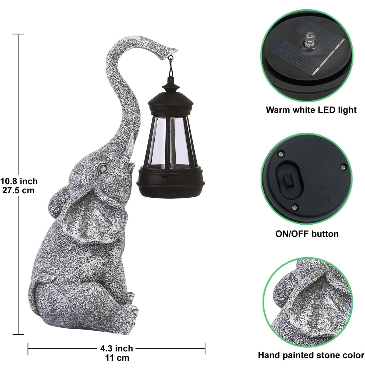 🔹 Čudovita vrtna dekoracija v obliki slončka, ki drži svetilko z rilcem