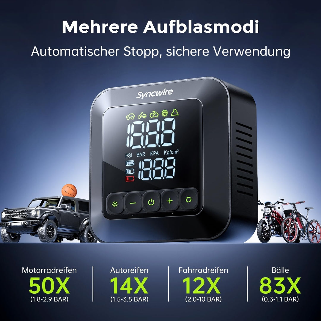 Vrhunski SYNCWIRE prenosni električni kompresor za pnevmatike – 10.35 BAR - 1 leto garancije