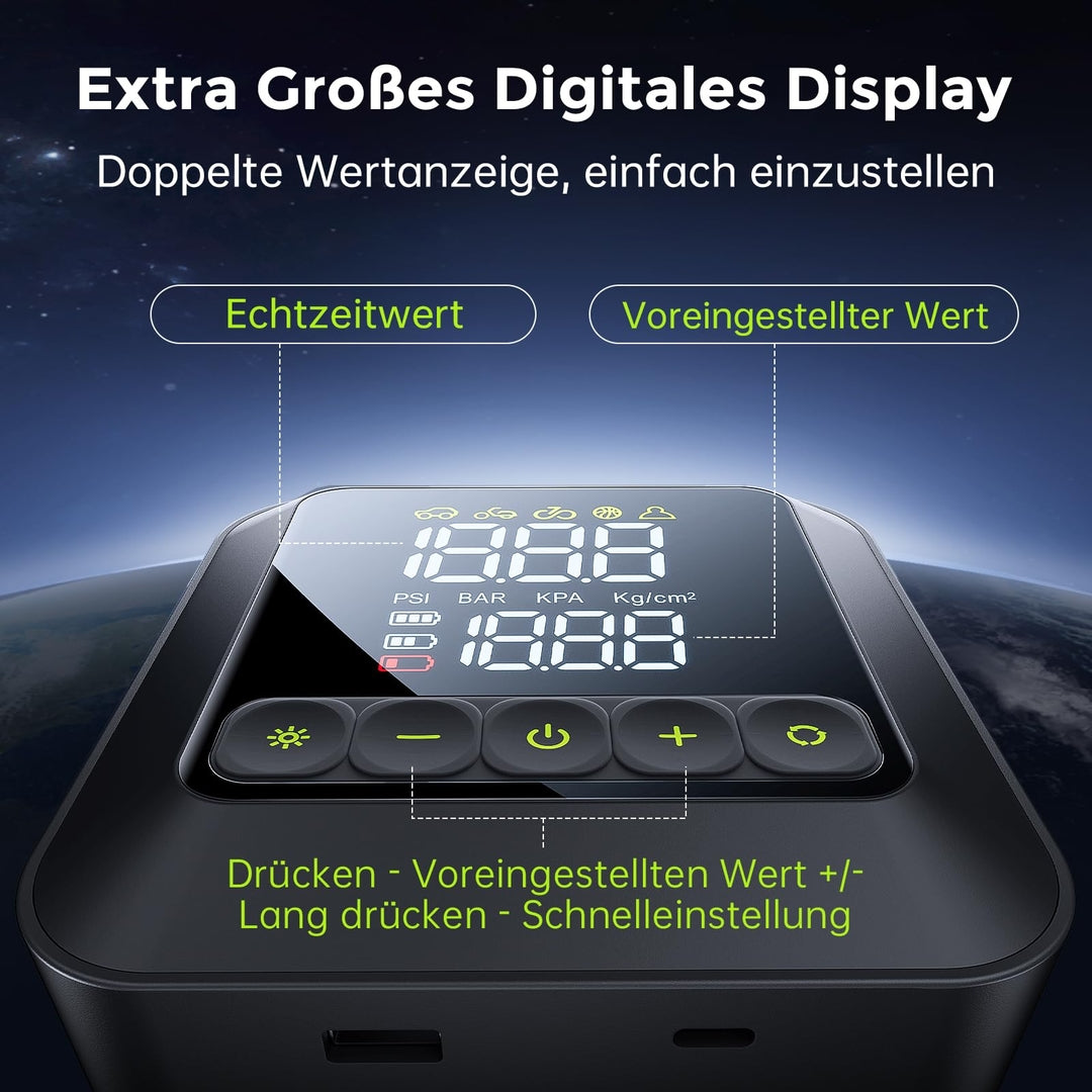 🔹 Močan pretok zraka – primerno za avtomobile, motorje, kolesa, športne žoge in blazine